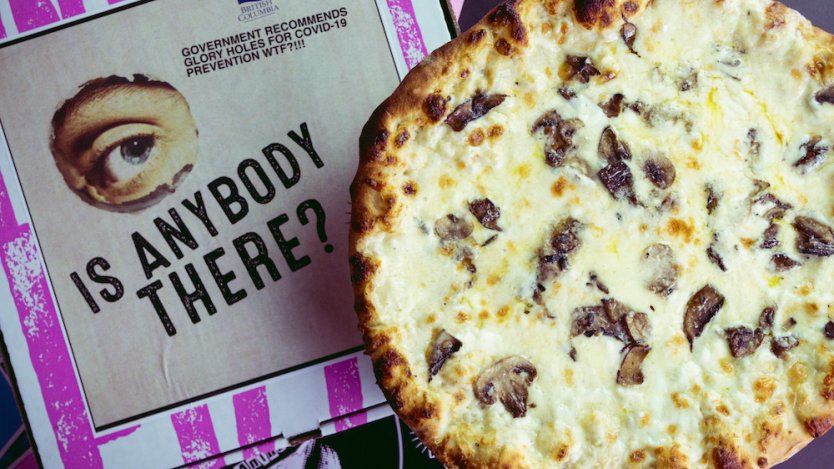 From the owners of The Cannibal Café, Park Drive, Alphabet City and The Five Point comes Vancouver's latest pizza purveyor, Anthem Pizza. Officially launching on Thursday, November 19, the take-out and delivery pizza maker has already made a bit of splash with its unique pizza box artwork. Anthem's lineup of box art that includes everything from a gloryhole (a reference to the B.C. government promoting the use of gloryholes as a COVID-19-friendly sexual act) and anti-Trump sentiments, to an homage to the late Mr. Chi Pig (lead singer of punk band SNFU) and much in-between.