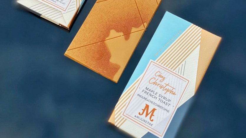The Maple Syrup French Toast Bar ($11.95) conjured up by Pak and chocolatier Christophe Bonzon is a stunner looks-wise and made from a proprietary blend of white chocolate, caramelized white chocolate, maple syrup, langue-de-chat biscuit and a touch of salt.