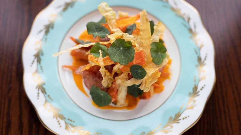 “I am very excited to be working with a new and very accomplished chef, Chris Barton, and we have taken a deeper dive into the idea of bringing history to life through the choice and presentation of ingredients and their associated stories,” Howell says. “Chris is very ingredient-driven and seasonally-focused, his work is impeccable.”