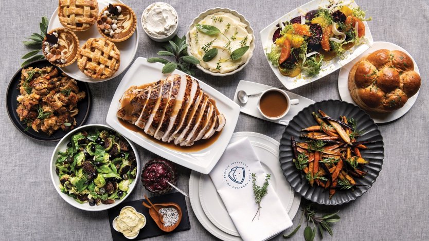 The Pacific Culinary Institute of Culinary Arts' Blue Hat Bakery and Cafe is offering up a traditional turkey dinner for two featuring a wide assortment of traditional Thanksgiving dishes and sides, including apple and thyme-brined turkey breast, buttermilk mashed potatoes, herb and cranberry stuffing, cinnamon baby carrots, pumpkin and apple pie with creme anglaise, and loads more.