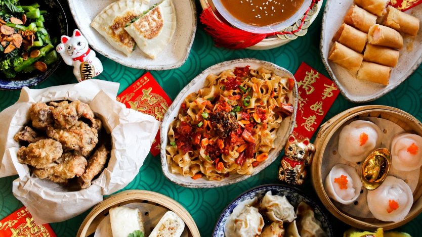 The gourmet multi-course meal package is large enough to comfortably feed four and features a slew of satiating signature offerings, including cured Chinese ham and prawn dumplings, pork and napa cabbage dumplings, chive pockets, sticky rice buns, prawn spring rolls, chicken wings, Biang Biang noodles, and what the restaurant describes as “an auspicious dessert of Nian Gao.”