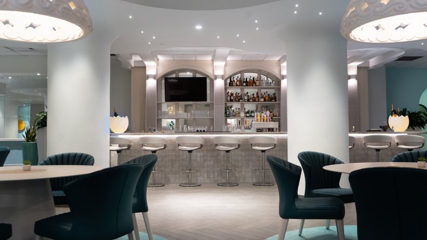 In addition to the food and beverage programs, the other big draw for the new Hotel Arts concept is the adjoining group golf simulators, which feature a comfortable and diversified seating area that can be adjusted to accommodate various group sizes.