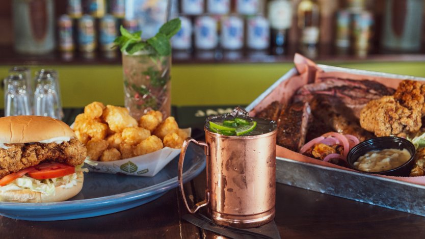 Picking up where Dixie’s left off (after closing in 2019), Slim’s BBQ will feature an array of traditional smokehouse offerings, such as deep-smoked beef brisket, pork butt, ribs, and fried chicken, along with an expansive selection of classic comfort food accompaniments like buttermilk biscuits, smoked brisket beans, and serrano-cheese spinach.