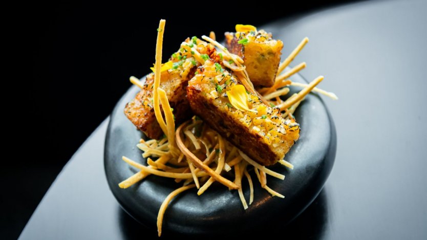 The menu is vast and offers everything from snacks and small plates, to meat and veggie skewers, dumplings, fried chicken and so much more. Not to be missed are the succulent steamed lobster tapioca dumplings, an ode to a style of traditional Vietnamese dumpling. The mochiko fried chicken is reminiscent of a well-balanced Manchurian chicken dish glazed with a tangy, sweet-and-spicy sauce.