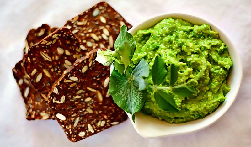 Spoon out the avocado flesh and put into a food processor. Add lime juice, garlic, green peas and salt into processor, then process until you have a smooth puree.