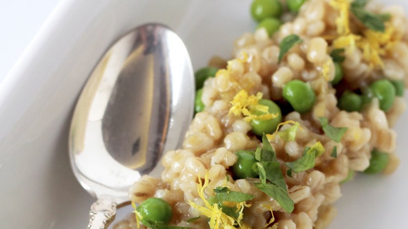 "It may be cheeky to call this a risotto since the traditional version uses rice, but the cooking technique is the same. The barley gets just as creamy as it cooks slowly with broth, but still stays a bit chewy for a much heartier dish. I like this with a lot of lemon zip, so I add the full tablespoon of lemon juice. Sprinkle some roughly chopped basil overtop just before serving for a bit more green and a herbal hit. This dish is excellent with roasted or pan-seared chicken." -- Gwendolyn Richards.