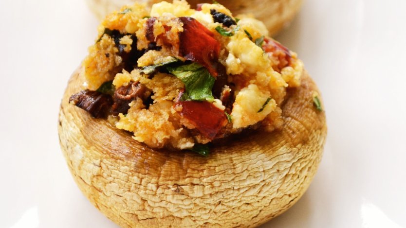 Place stuffing-side up on a rimmed baking sheet and bake for 20 minutes, until the mushrooms are soft and the filling is crispy and golden.
