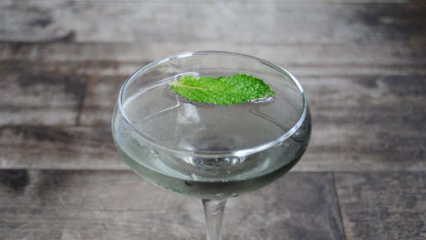 Pour gin, lavender syrup and Crème Yvette into a cocktail shaker. Shake and double-strain into a Coupe glass. Top with cava, and garnish with mint leaf.