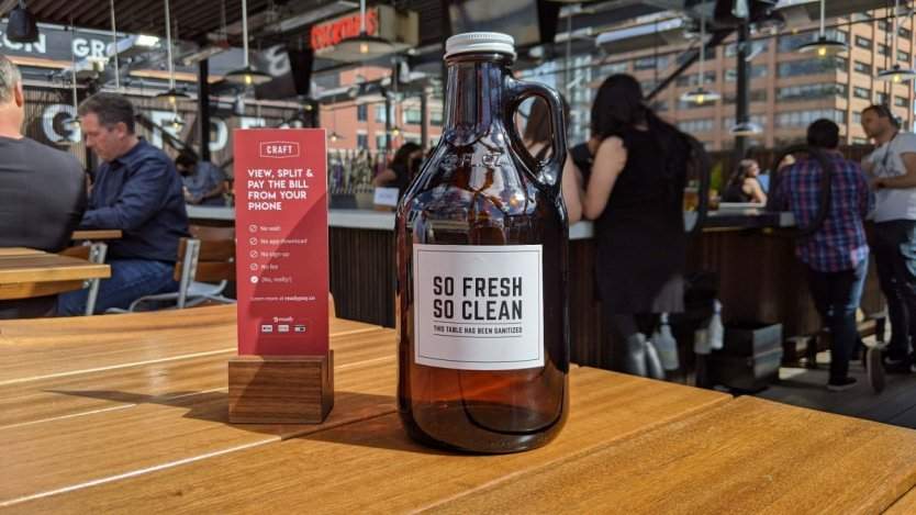 As major cities like Vancouver, Edmonton, Calgary and Winnipeg get into a new groove for sit-down dining, we've seen all types of independent restaurants and chains operate with new and typically extensive health and safety measures in place. Take Craft Beer Market, as a leading example: the company is clearly marking sanitized tables (pictured above), offering complimentary sanitizer on each tabletop, digital menus and payment options (no debit terminal required) and more. These are just a few things that provide peace of mind to diners these days.