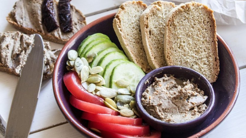 No matter when it's eaten--early morning breakfast, a quick lunch spread on a piece of toast or smeared onto some melba toasts at a picnic--this can be just as pleasing (to carnivores, anyway) as a simple meal or as an hors d' oeuvre.