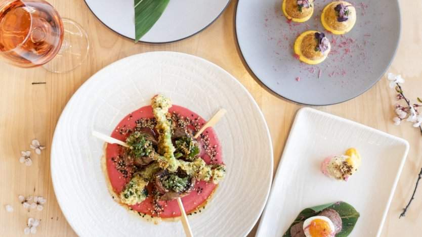 Executive chef Ricardo Valverde has continued this culinary philosophy while summoning spring with such Nikkei-forward dishes as smoked black cod croquettes with sakura dust, tempura baby squid taco with sakura blossoms, grilled ribeye anticucho with sakura-infused potato crème, and a dessert course of sakura-infused blancmange with cherry blossom jelly.