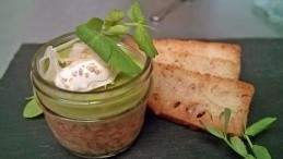Okanagan potted salmon with spring pea puree and crème fraiche